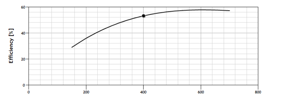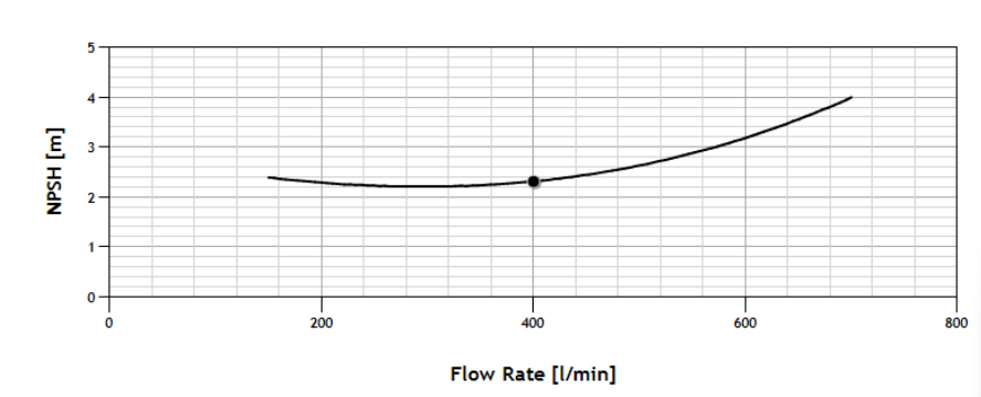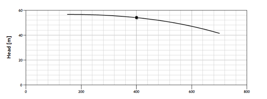 Custom Selection – FORAS MA Series pump was selected to ensure a perfect balance between flow rate Q: 400 l/min and pressure H: 54.1 m, optimising for efficiency η: 53.18% and power: 6.66 kW.